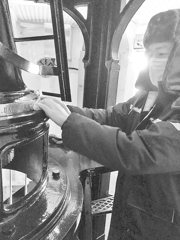 在自动化技术高度发达的今天,为何仍需人工守塔?孙辉解释道,“正因为老铁山灯塔是珍贵的历史文物,其内部超过百年的传动设备需要人工的精心呵护与定期检查。自动化虽能实现开关灯功能,但这座灯塔承载的不仅是导航功能,更是一段活着的历史。”