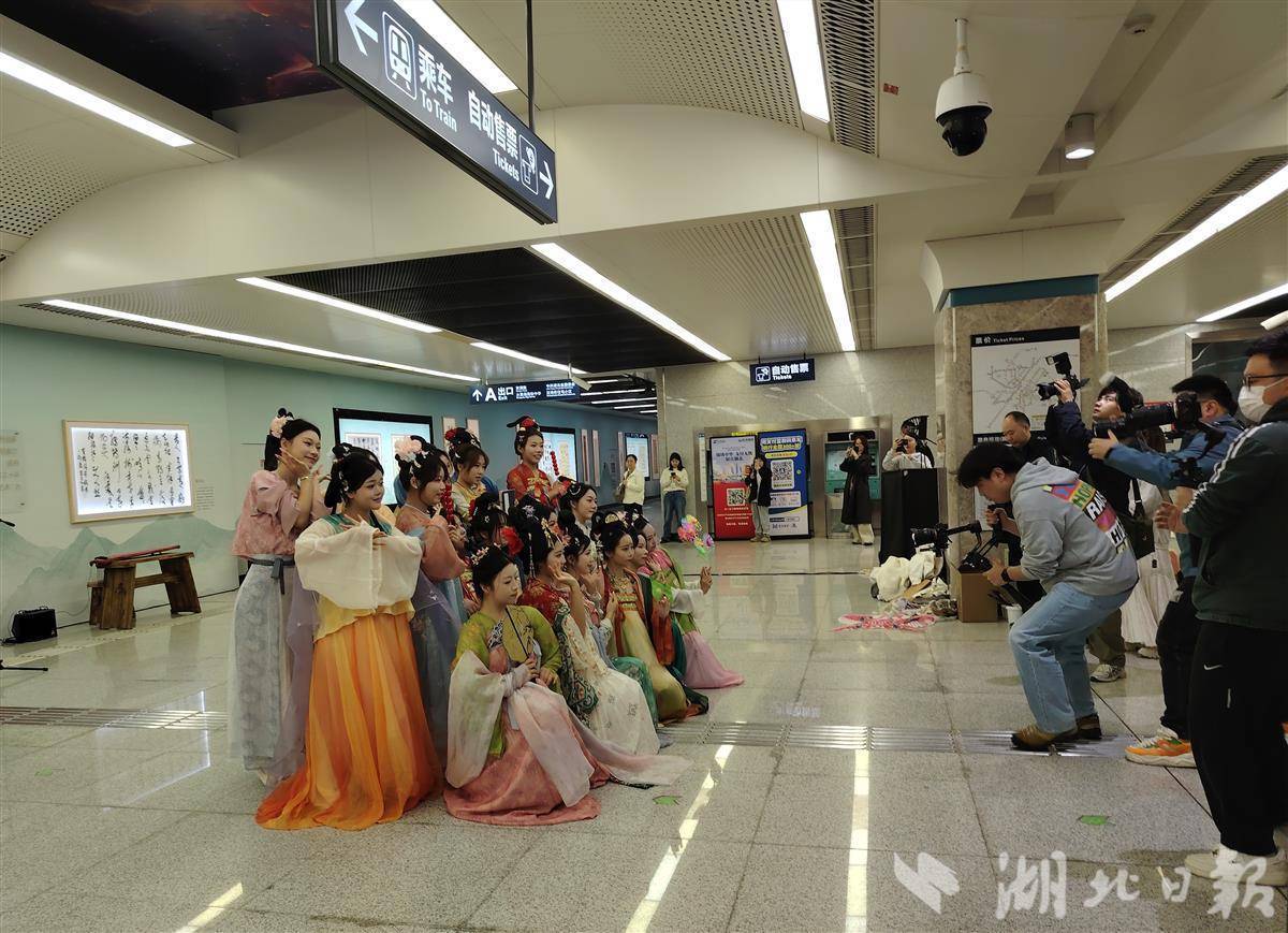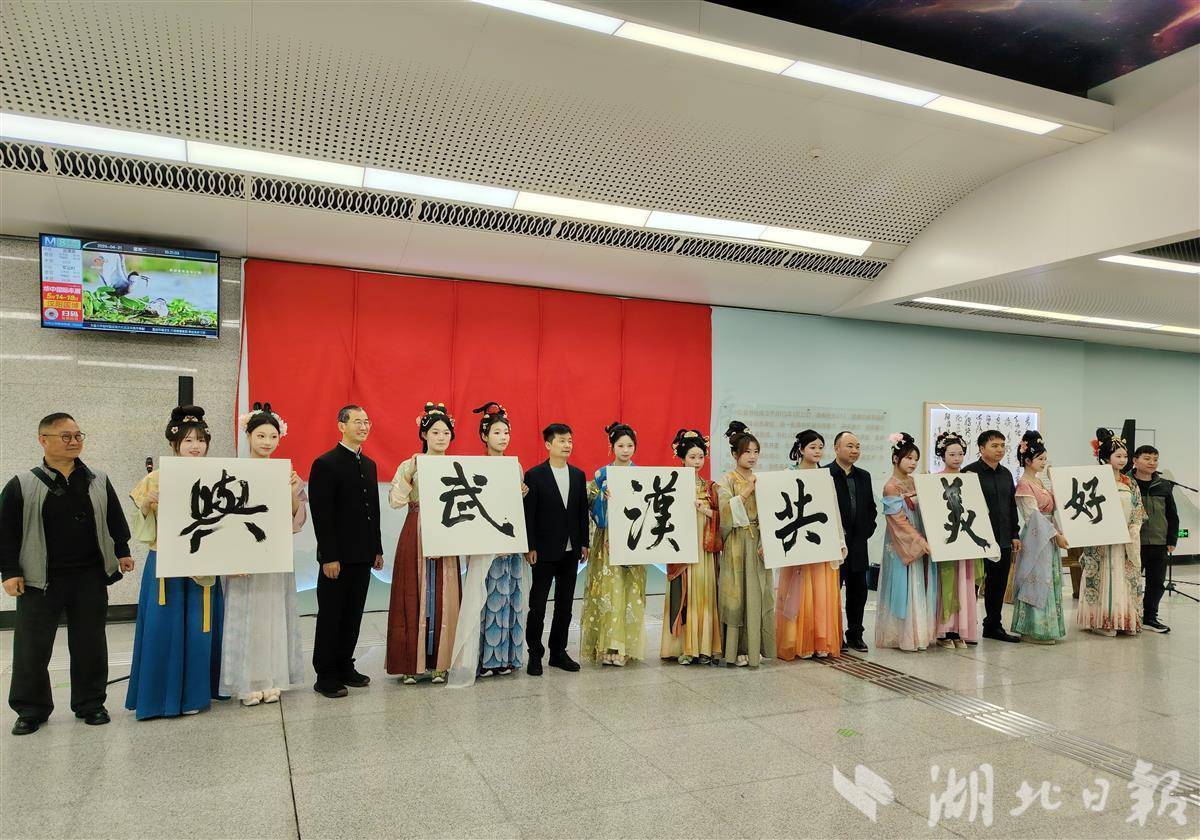 当日上午,在水果湖站D进站口,相关领导嘉宾共同为艺术空间揭幕。启动仪式上,湖北城建职院大学生艺术团表演了汉服秀《市井欢歌》,书法参展作者王佳琦带来古琴演奏,刘子安、万双全、柳国良、余继文、陈才俊、谈维等6位书法家现场挥毫泼墨,共同书写艺术空间主题口号“与武汉共美好”,定格城市温情。