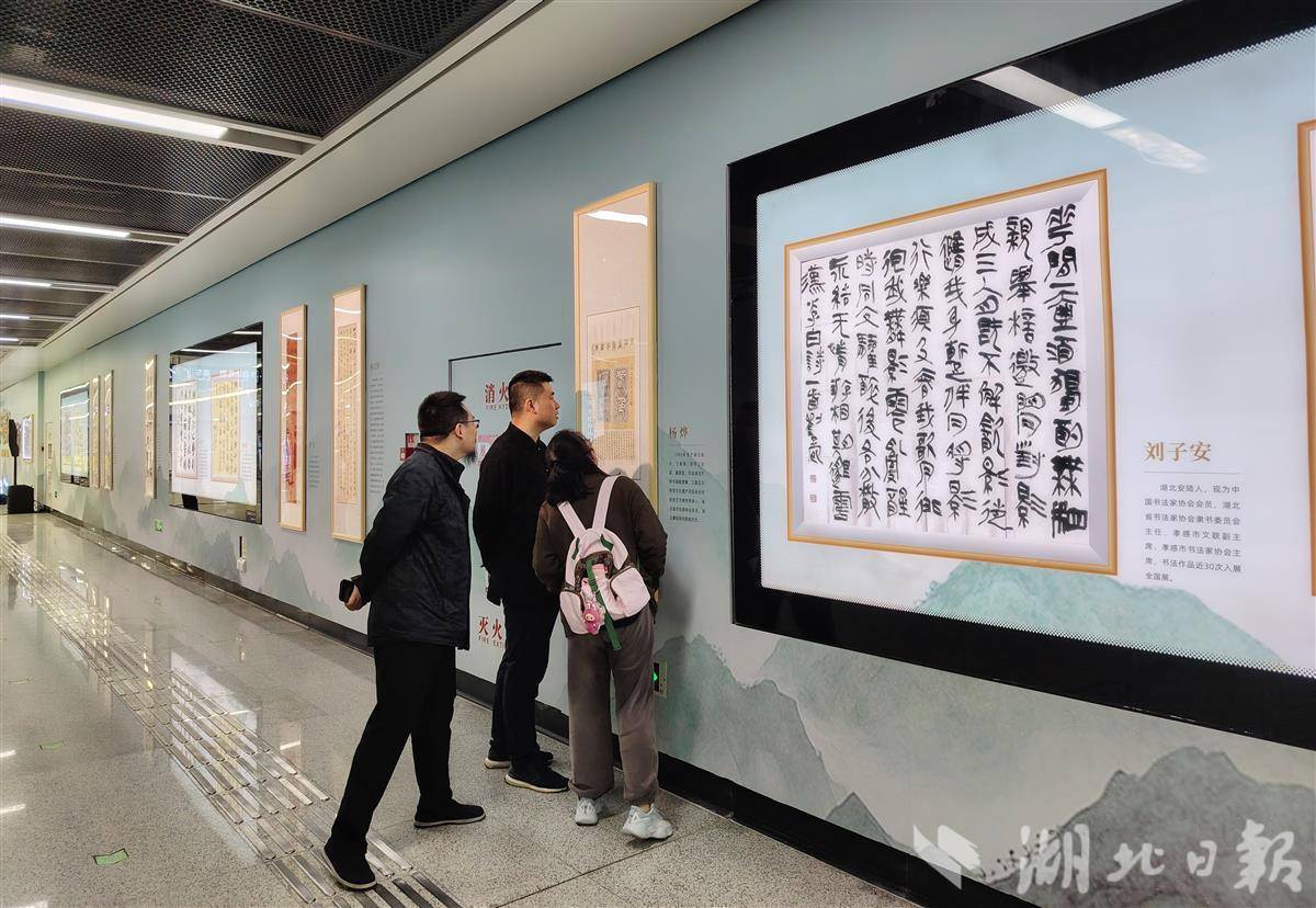 艺术空间一亮相,便吸引了不少过往乘客驻足观看,不少人拿出手机拍照打卡。“以前书法展多在美术馆,总觉得有距离感。今天坐地铁路过,突然看到墙上的行书对联,感觉文化就在身边。”市民李女士表示。